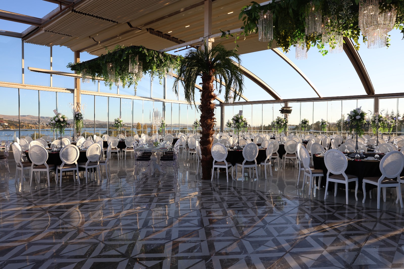 Afrodit Balo Salonumuz hem kapalı olarak, hem de istendiğinde hem üzeri hem yan bölümleri açılarak Açık Hava olarak hizmet verebilmektedir.