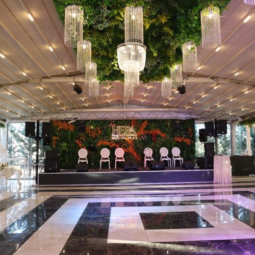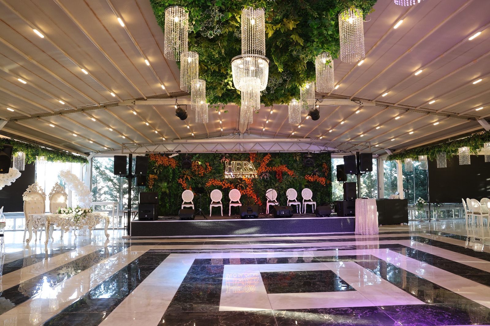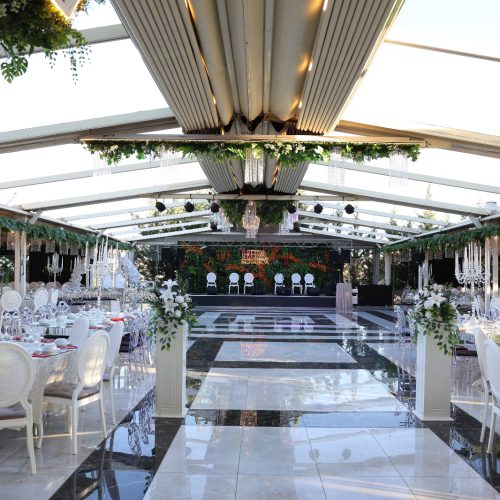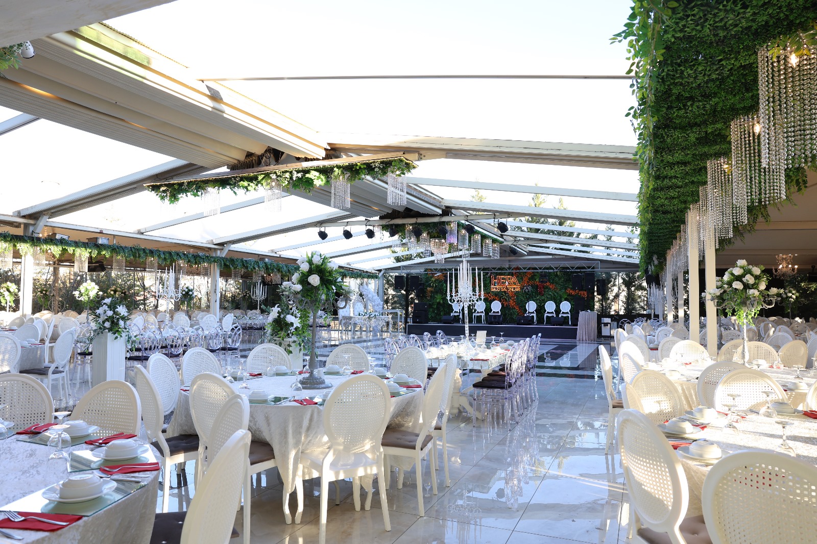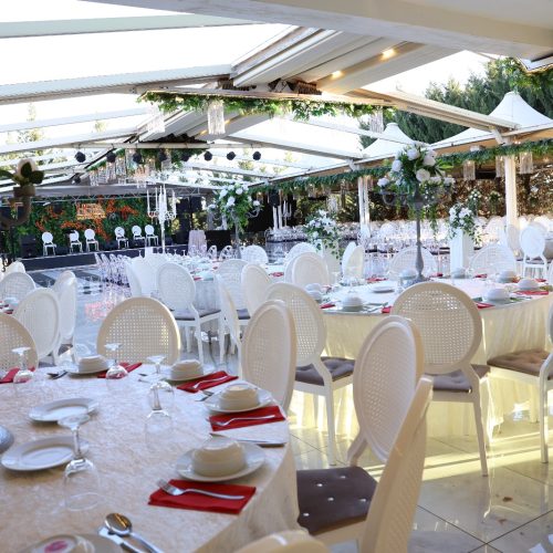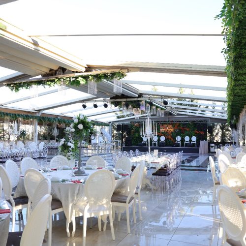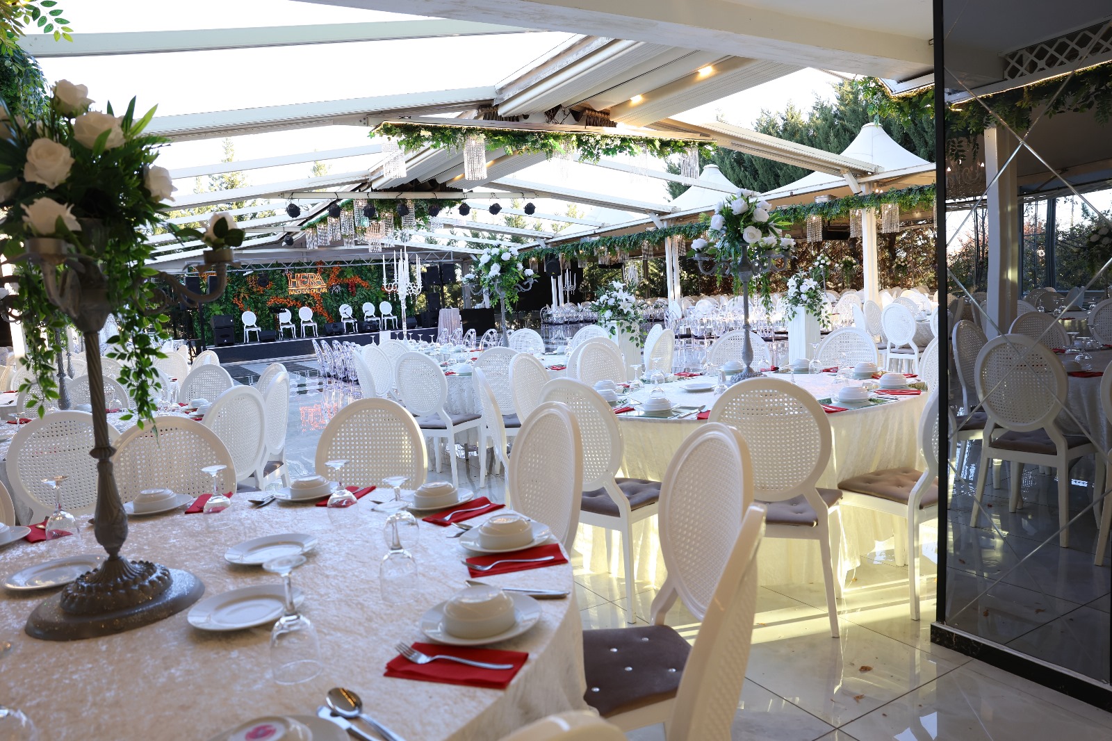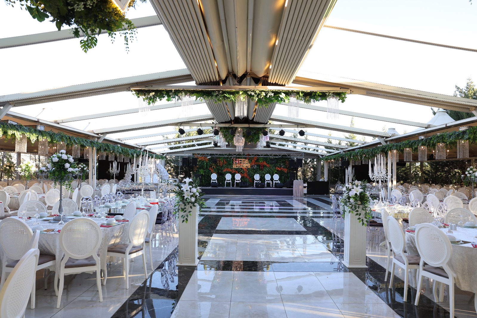Helena Balo Salonumuz hem kapalı olarak, hem de istendiğinde hem üzeri hem yan bölümleri açılarak Açık Hava olarak hizmet verebilmektedir.